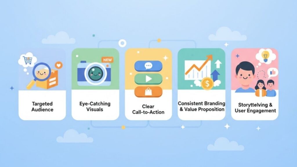 カルーセル広告の各カードは、独立した情報ではなく、一貫したストーリーとして設計すべきです。